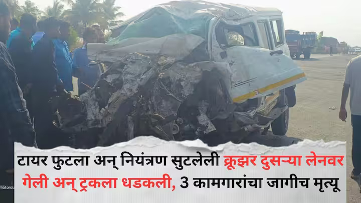 Accident News: टायर फुटल्याने नियंत्रण सुटलेली क्रूझर गाडी थेट दुसऱ्या लेनवर गेल्याने हा भीषण अपघात घडला.