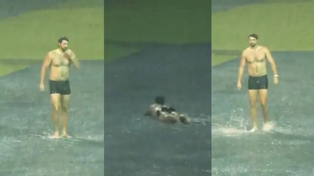 टिम डेविडने मैदानातच काढले कपडे आणि लुटला पावसाचा आनंद, चिन्नास्वामी स्टेडियम झालं स्विमिंग पूल Video